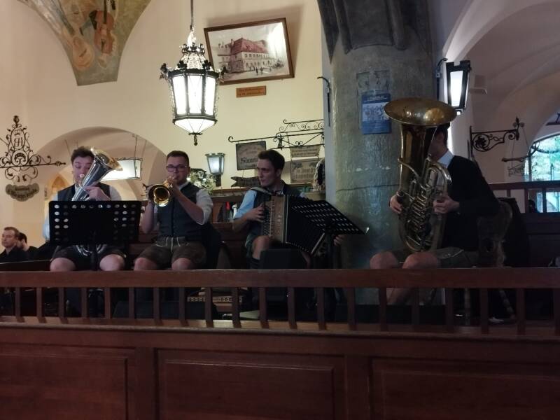 Wat je zeker niet mag overslaan wanneer je in München bent, is het bezoeken van Hofbräuhaus, dé bierbrouwerij van München. Ook wanneer je geen bier drinkt, zoals ik, is dit ontzettend leuk om in ieder geval een drankje te hebben gedronken. Je moet wel even op zoek naar een plekje, want het zit hier altijd stampvol. Wanneer je een plekje hebt gevonden, zul je al snel merken dat hier een gezellige sfeer heerst en je je hier prima een dagdeel kan vermaken. Toen wij er waren speelde er ook een bandje. Ik weet niet of dit altijd het geval is, maar dit zorgde in ieder geval voor nog meer gezelligheid.