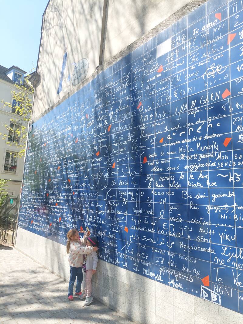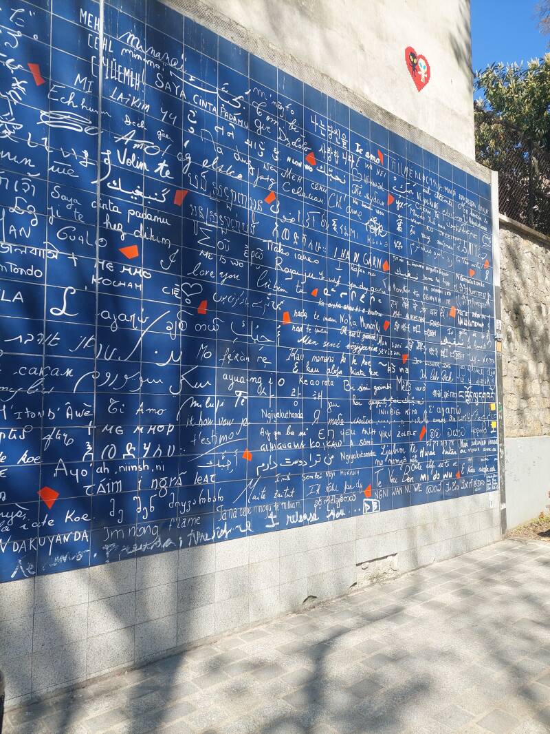 De liefdesmuur in Parijs, oftewel Le Mur des Je t’aime, is een romantisch kunstwerk gelegen in het charmante Square Jehan Rictus in Montmartre. Deze bijzondere muur werd in 2000 gecreëerd door Frédéric Baron en Claire Kito en bestaat uit 612 blauwglanzende tegels waarop "Ik hou van jou" in meer dan 300 talen geschreven staat.