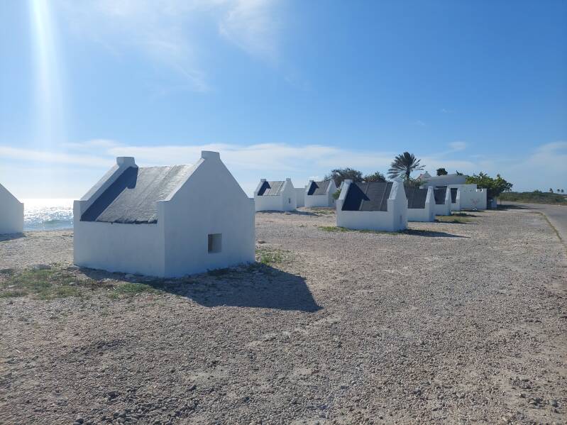 De WIC liet slaven in de zoutpannen werken. Vanaf 1850 zijn de slavenhuisjes gebouwd. Daarvoor sliepen de slaven in zelfgemaakte huisjes van hout, stro en leem. De slavenhuisjes zijn niet groot. Ze zijn nauwelijks 2 meter hoog en de deur is dan ook te klein om rechtop te kunnen staan. Er sliepen 2 tot 6 slaven in een huisje.